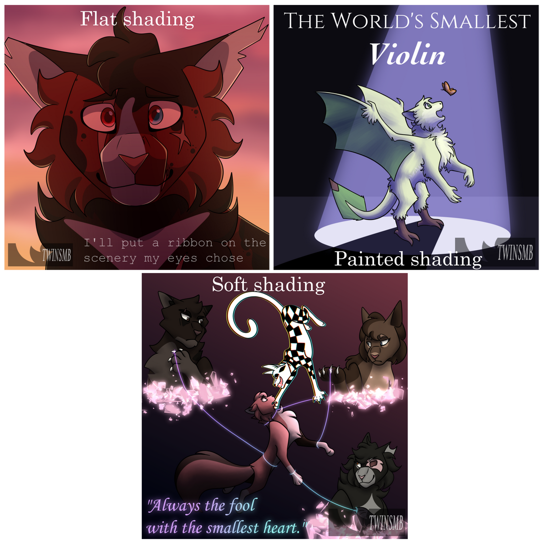 | Type | Sketch | Lined | Flat color | Flat shading | Painted shading | Soft shading |